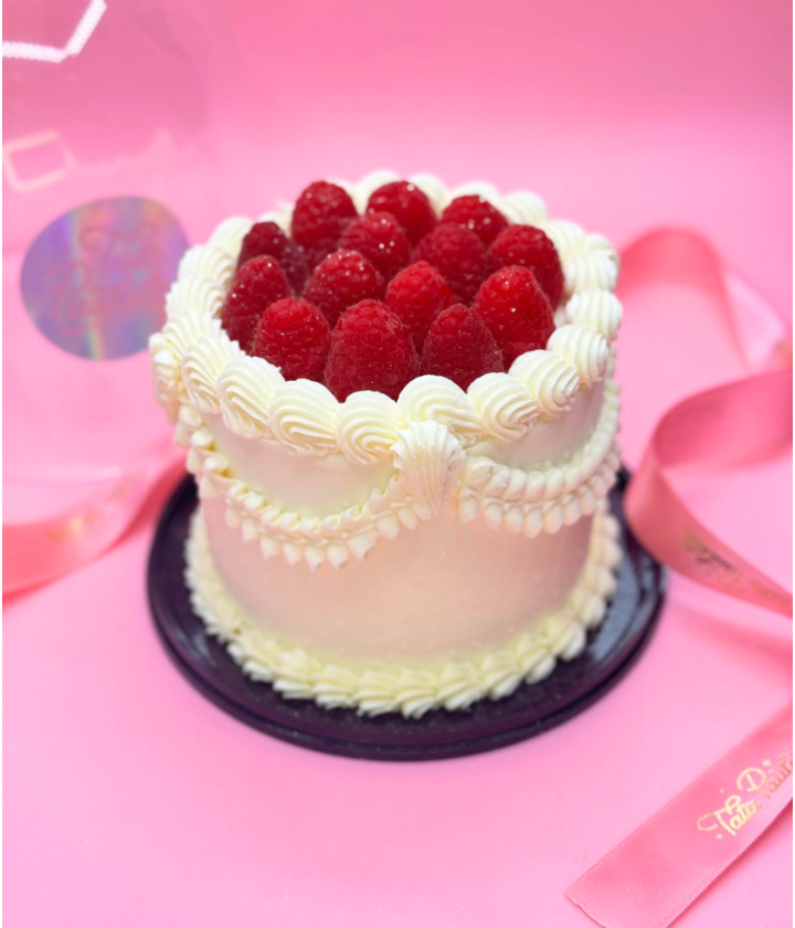 Le mini rétro cake façon framboisier... un vrai retour à l'enfance. Moelleux, crémeux et framboises fraîches.