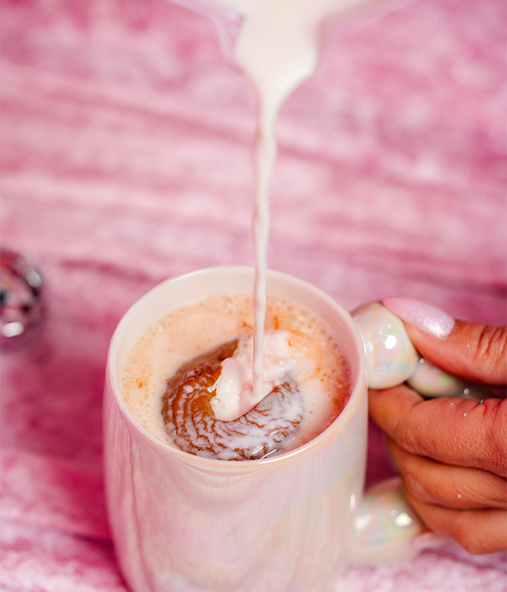 1. Faire bouillir le lait de son choix, au micro-ondes ou dans une petite casserole. (environ 1 tasse)