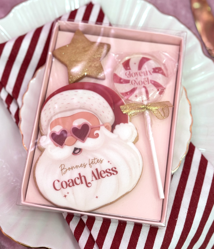 - 1 sablé Santa à personnaliser avec le prénom ou petit mot de votre choix (max 3 mots)