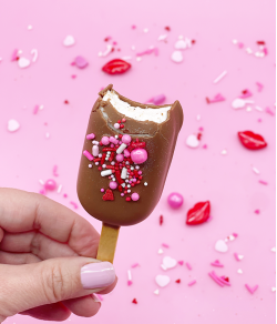 Notre esquimaux est recouvert d'une couche gourmande de chocolat au lait Cacao Barry, fourrée de guimauves à la vanille de Madagascar et décorée en mode Halloween.