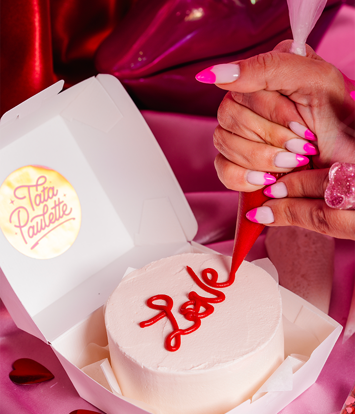 Des poches de crème au beurre colorée (rouge, rose et blanc) pour personnaliser ton gâteau